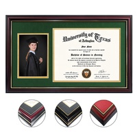 Custom Zwart Hout Diploma Certificaat Frame Met Graduatie Foto Houder Voor Dubbele A4 Certificaten Of 8*10In Foto
